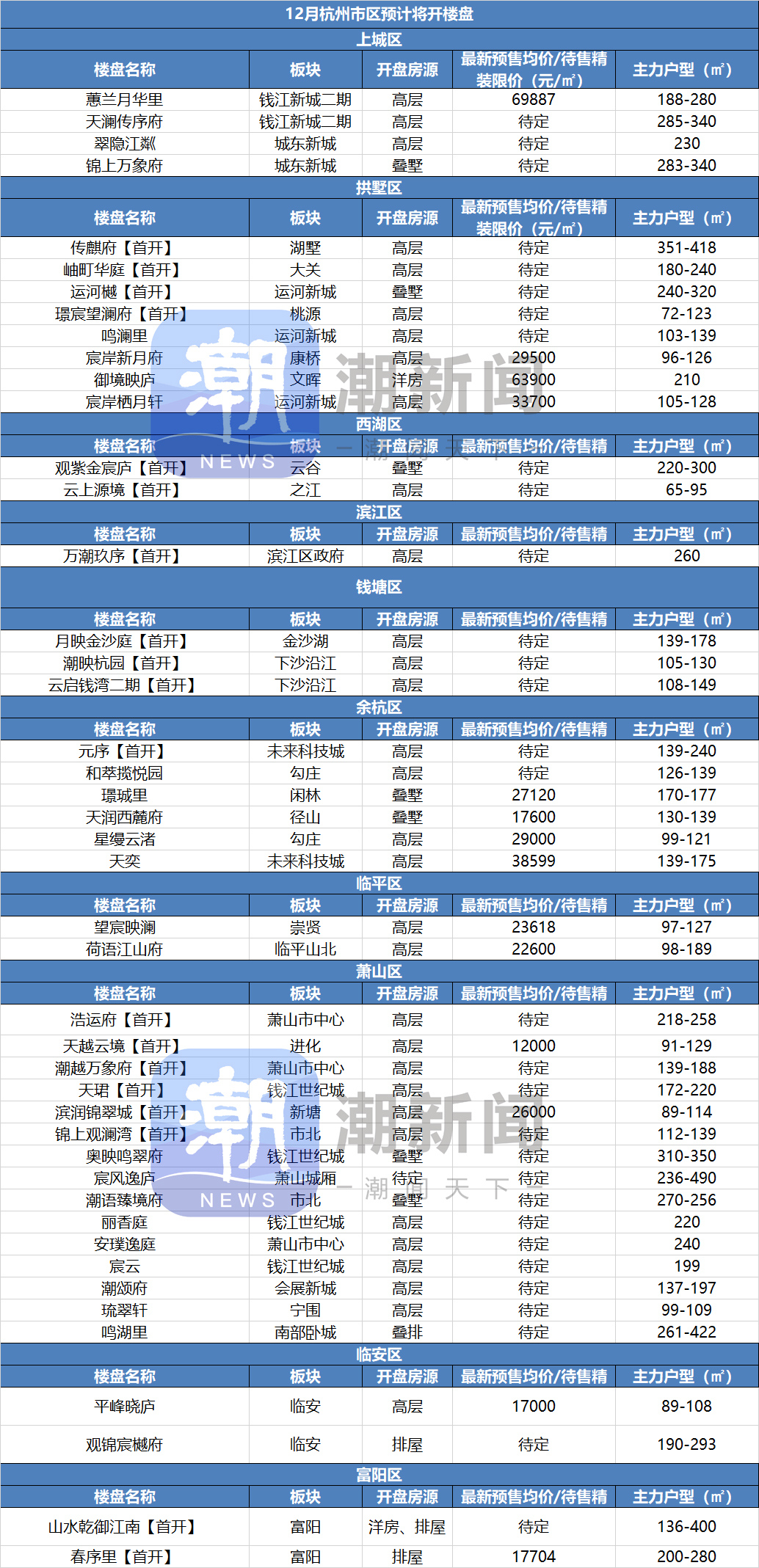 注:以上数据来源于潮新闻美好生活研究院,具体开盘信息以售楼处通知为准